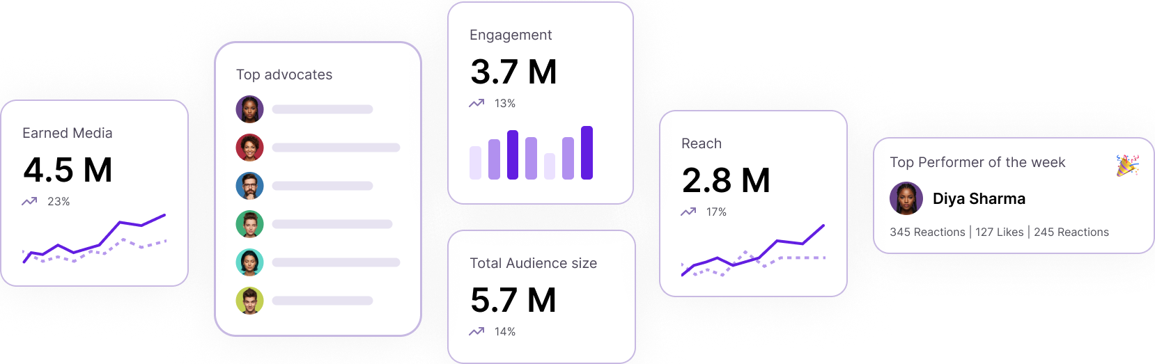Built for marketing, brand, and communications leaders who want consistent reach without begging teams to share content. Everything comes together in one place.