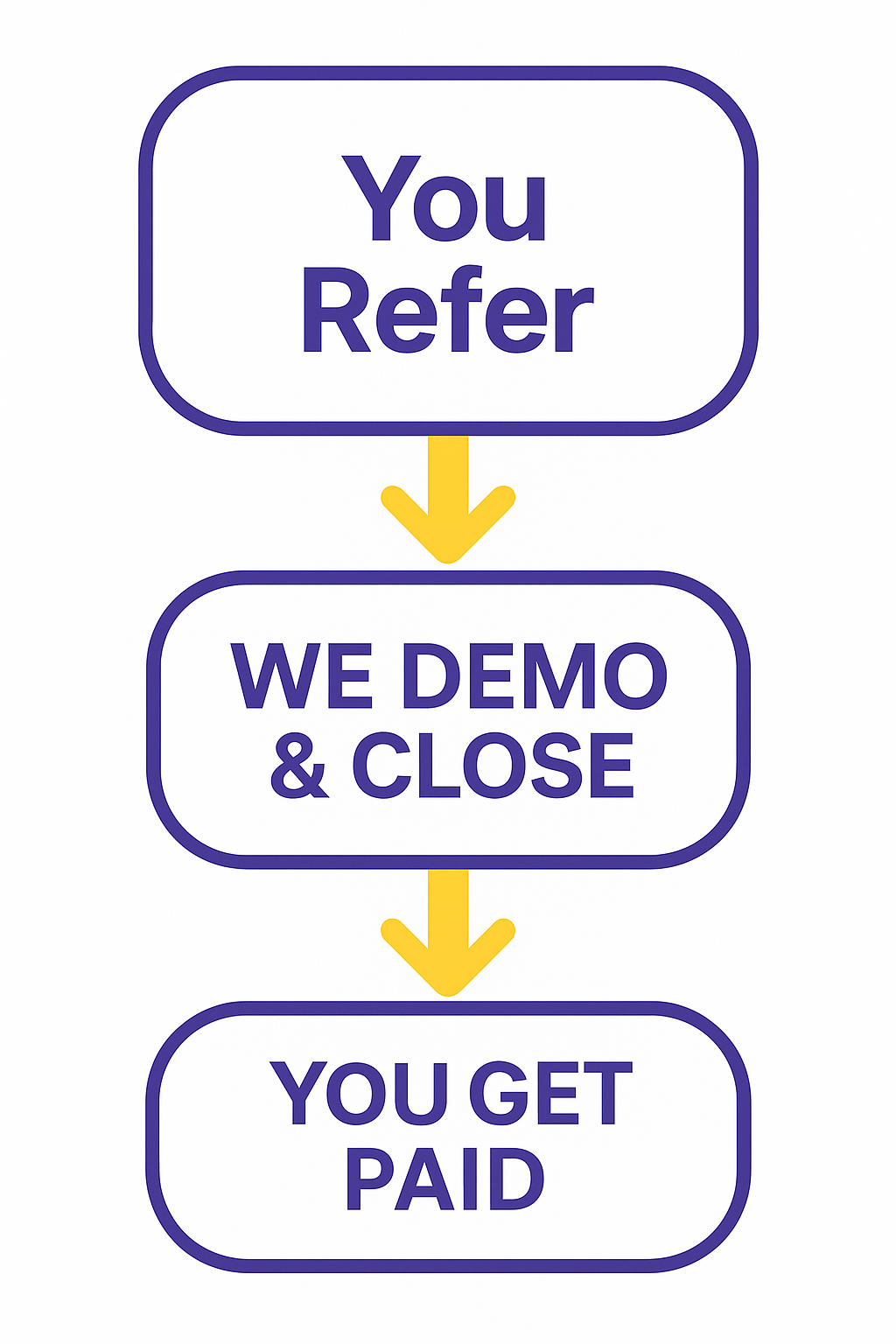 Get paid for every referral that closes. Simple, scalable revenue for making intros.